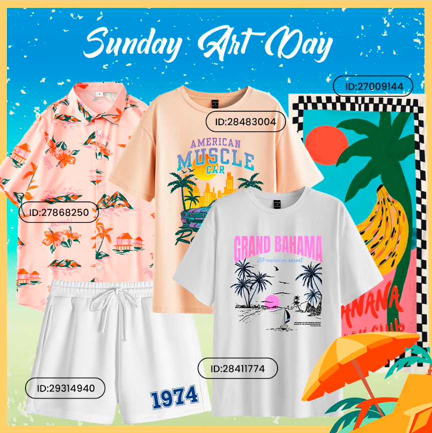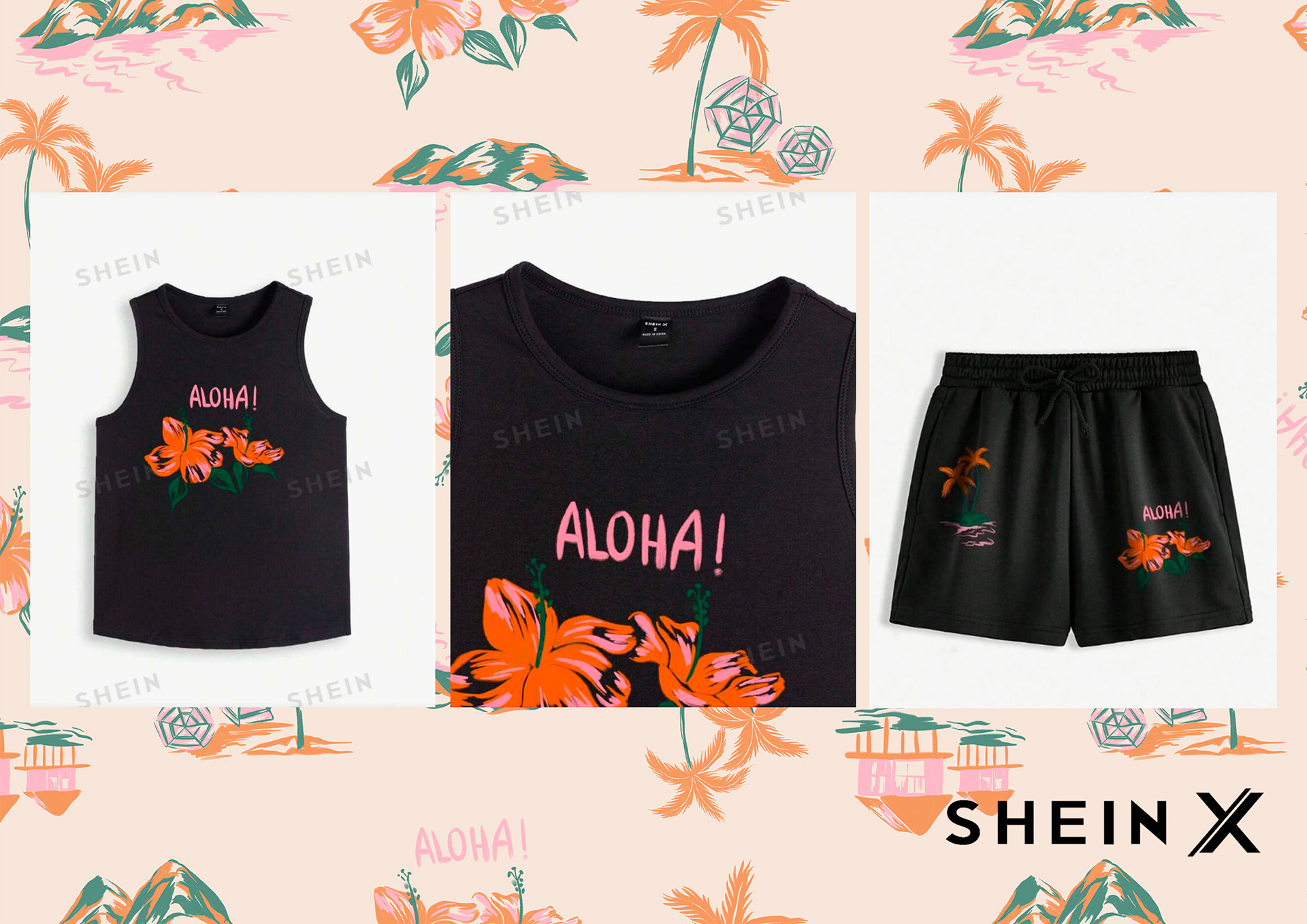 Shein invited me to develop a print with a proposal to bring a vintage and travel sensation and that's a result, you can find products with this art on the official Shein online shop.